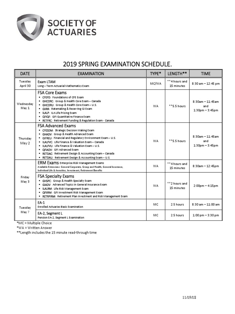 2020 Registration Deadline and Exam Dates Actuarial Society at UC Irvine