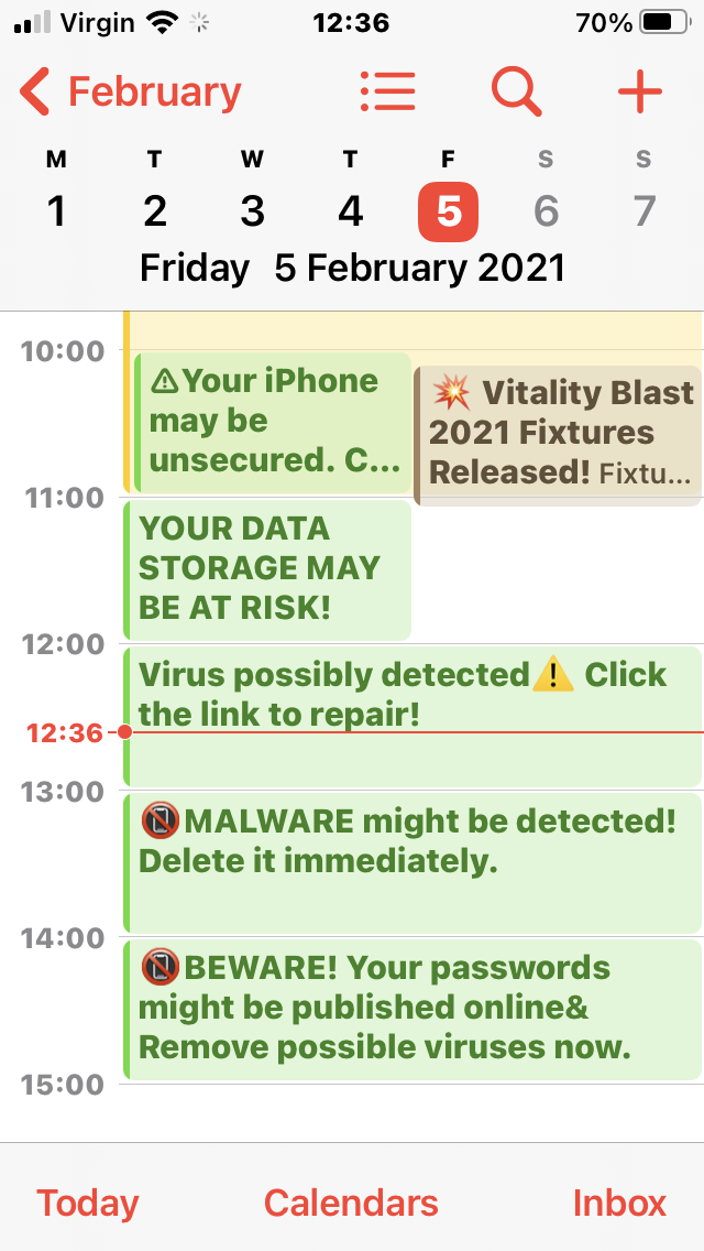 Spam On Apple Calendar - Open the spam event in your calendar. 2) i cant delete or decline. Receiving spam invitations or entries on apple’s calendar has been happening for years. Select the sender’s email address and copy it. One additional suggestion i found is that you should find. If you receive unwanted calendar invitations or event notifications, you may have subscribed to a spam calendar by accident. Are you tired of pesky calendar spam on your iphone calendar app? Getting rid of seemingly endless calendar event invites and spam subscriptions of unknown origin should be an easy process. To remove spam calendars and events on your iphone, the steps below can help: Beginning anew can be a logical and helpful way to untangle yourself. Or if you want to report an event from an unknown contact, tap report junk, then delete and report junk. I have been getting spam invites into calender from junk mail (i assume) i have not even opened these junk emails. How to stop iphone calendar spam. In outlook, you can first make a setting to block future calendar spam, and then you can evidentially delete the events. Delete spam calendars and events on iphone. Receiving spam invitations or entries on apple’s calendar has been happening for years. Getting rid of seemingly endless calendar event invites and spam subscriptions of unknown origin should be an easy process. Are you tired of pesky calendar spam on your iphone calendar app? 2) i cant delete or decline. To remove the events, delete the calendar. Select the sender’s email address and copy it. If you receive unwanted calendar invitations or event notifications, you may have subscribed to a spam calendar by accident. 1) how can i stop this happening? One additional suggestion i found is that you should find. Delete spam calendars and events on iphone. Or if you want to report an event from an unknown contact, tap report junk, then delete and report junk. Select the sender’s email address and copy it. Getting rid of seemingly endless calendar event invites and spam subscriptions of unknown origin should be an easy process. We understand how frustrating it can be when spam interrupts your genuine upcoming. One additional suggestion i found is that you should find. How to stop iphone calendar spam. To remove spam calendars and events on your iphone, the steps below can help: However, some icloud users recently noticed that random entries range from. We understand how frustrating it can be when spam interrupts your genuine upcoming events and bombards you. Getting rid of seemingly endless calendar event invites and spam subscriptions of unknown origin should be an easy process. To remove spam calendars and events on your iphone, the steps below can help: However, some icloud users recently noticed that random entries range from. How to stop iphone calendar spam. Select the sender’s email address and copy it. Depending on how pervasive the iphone calendar spam is, here are some methods you can try to keep your calendar app clean and. Open the spam event in your calendar. If you receive unwanted calendar invitations or event notifications, you may have subscribed to a spam calendar by accident. Getting rid of seemingly endless calendar event invites and spam subscriptions. Open the spam event in your calendar. To remove spam calendars and events on your iphone, the steps below can help: Getting rid of seemingly endless calendar event invites and spam subscriptions of unknown origin should be an easy process. 2) i cant delete or decline. In outlook, you can first make a setting to block future calendar spam, and. Receiving spam invitations or entries on apple’s calendar has been happening for years. 1) how can i stop this happening? One additional suggestion i found is that you should find. However, some icloud users recently noticed that random entries range from. Depending on how pervasive the iphone calendar spam is, here are some methods you can try to keep your. We understand how frustrating it can be when spam interrupts your genuine upcoming events and bombards you. In outlook, you can first make a setting to block future calendar spam, and then you can evidentially delete the events. Select the sender’s email address and copy it. Beginning anew can be a logical and helpful way to untangle yourself. Open your. The more likely answer is that you've accidentally subscribed to a spam calendar on your iphone. One of the best ways to handle invasive iphone calendar spam is to delete your calendar completely. Are you tired of pesky calendar spam on your iphone calendar app? If you receive unwanted calendar invitations or event notifications, you may have subscribed to a. If you receive unwanted calendar invitations or event notifications, you may have subscribed to a spam calendar by accident. Are you tired of pesky calendar spam on your iphone calendar app? One additional suggestion i found is that you should find. One of the best ways to handle invasive iphone calendar spam is to delete your calendar completely. To remove. Or if you want to report an event from an unknown contact, tap report junk, then delete and report junk. If unknown (and unwanted) events are suddenly appearing in your iphone. Depending on how pervasive the iphone calendar spam is, here are some methods you can try to keep your calendar app clean and. However, some icloud users recently noticed that random entries range from. In outlook, you can first make a setting to block future calendar spam, and then you can evidentially delete the events. 2) i cant delete or decline. To remove the events, delete the calendar. I have been getting spam invites into calender from junk mail (i assume) i have not even opened these junk emails. We understand how frustrating it can be when spam interrupts your genuine upcoming events and bombards you. Are you tired of pesky calendar spam on your iphone calendar app? Receiving spam invitations or entries on apple’s calendar has 
