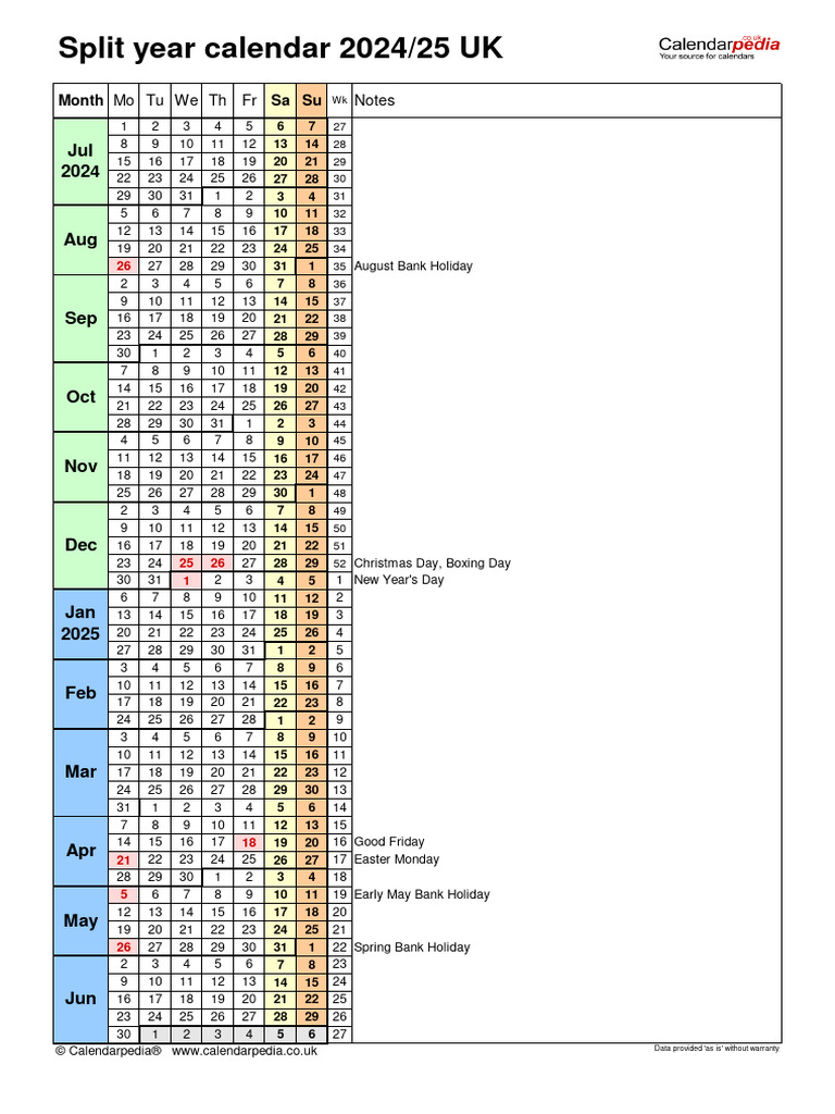Split Year Calendar 2425
