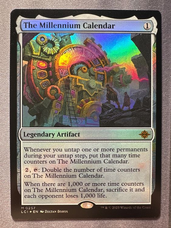 When There Are 1,000 Or More Time Counters On The Millennium Calendar, Sacrifice It And Each Opponent Loses 1,000 Life.