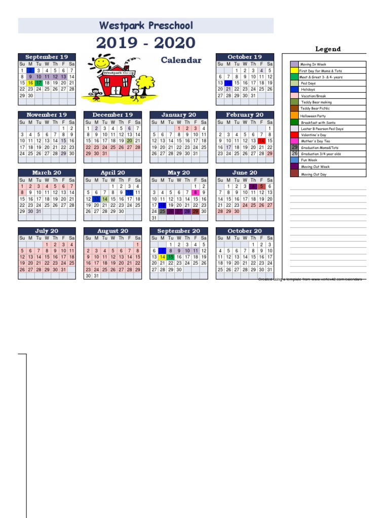 Westpark Preschool Calendar 201920 Download Free PDF Observances