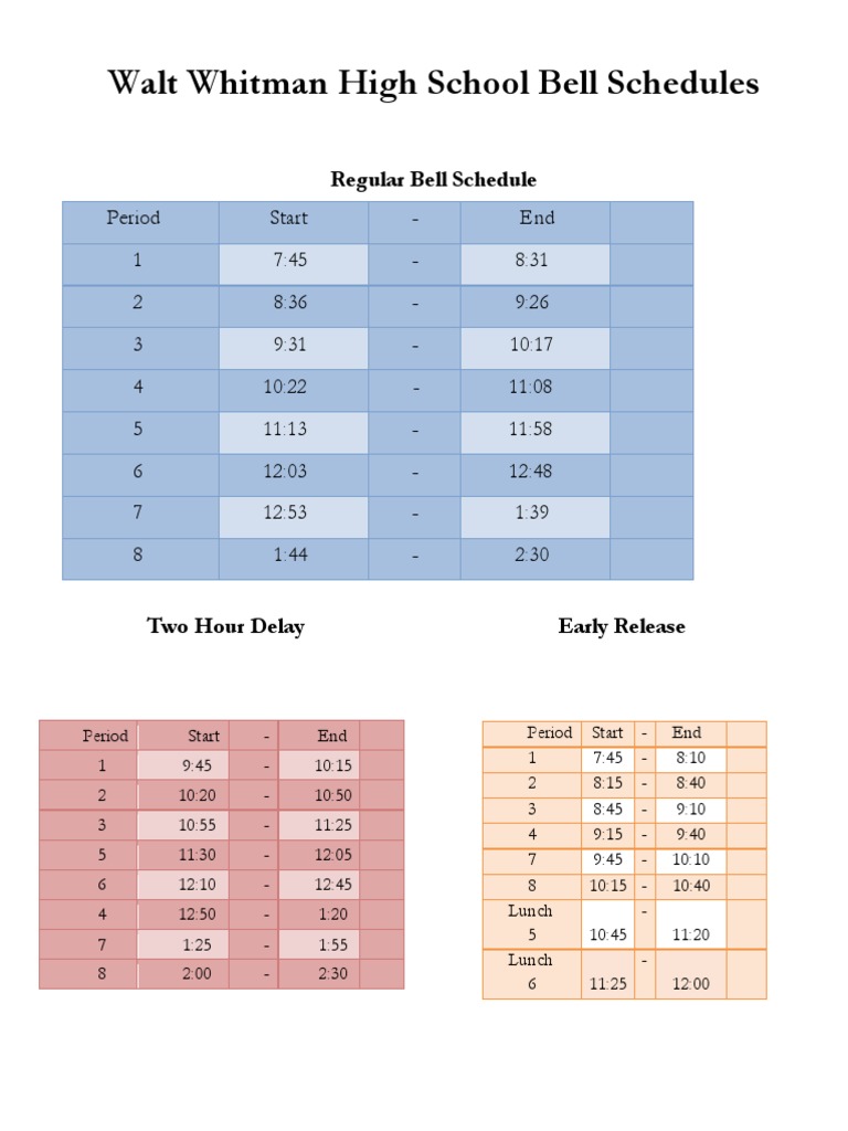 WWHS Bell Schedules PDF Schools Educational Organizations