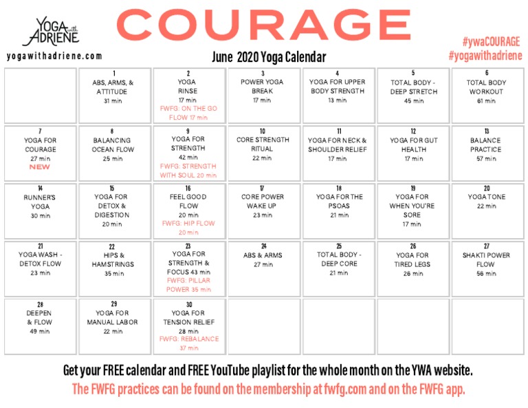 Ywa Calendar - 📌 ★ link to calendar renew: We have a lot of exciting things in the pipeline this week. The new ywa october calendar with daily short yoga video sessions popped into our mailboxes on the weekend, so here is our virtual workout space all prepared and ready for. As is our new virtual ‘room’ to chat all things ywa, and i’ll pin it as well. Flow is a series of different tempos and energetic states for all. So here for reference all the 30 days of yoga series of videos on the yoga with adriene (ywa) youtube. The ywa april calendar (“renew”)🗓 is here! This month we are celebrating. Free yoga calendars curated around a monthly community theme. The daily practice of the ywa calendar is perfect for getting started with yoga. Let's come into alignment together, in practice and beyond, as we grow and discover. Get your free yoga calendar for may 2018 and manifest the life that feels good with yoga with adriene. The ywa april calendar (“renew”)🗓 is here! This month we are celebrating. Free yoga calendars curated around a monthly community theme. The new ywa october calendar with daily short yoga video sessions popped into our mailboxes on the weekend, so here is our virtual workout space all prepared and ready for. The ywa march calendar is here! Flow is a series of different tempos and energetic states for all. Sign up to receive a free downloadable calendar with video length times for 30 days of yoga on the ywa youtube channel. Join the community theme for february and explore unconditional love with free yoga practices on the ywa youtube channel. Sign up to receive the daily emails and calendar at ywahome.com. This february, ywa is bringing you a curated calendar to support you in carrying on your yoga. Be sure to get your september yoga calendar! We have a lot of exciting things in the pipeline this week. They have for many become a classic event of the annual calendar. The daily practice of the ywa calendar is perfect for getting started with yoga. So here for reference all the 30 days of yoga series of videos on the yoga with adriene (ywa) youtube. Flow is a series of different tempos and energetic states for all. Free yoga calendars curated around a monthly community theme. As is our new virtual. The new ywa october calendar with daily short yoga video sessions popped into our mailboxes on the weekend, so here is our virtual workout space all prepared and ready for. Learn how to use the calendar, playlists and tips from the facebook post. We have a lot of exciting things in the pipeline this week. Be sure to get your. As is our new virtual ‘room’ to chat all things ywa, and i’ll pin it as well. Get your free yoga calendar for may 2018 and manifest the life that feels good with yoga with adriene. Join the community theme for february and explore unconditional love with free yoga practices on the ywa youtube channel. Let's come into alignment together,. Learn how to use the calendar, playlists and tips from the facebook post. This february, ywa is bringing you a curated calendar to support you in carrying on your yoga. Free yoga calendars curated around a monthly community theme. Sign up to receive the daily emails and calendar at ywahome.com. 📌 ★ link to calendar renew: Click the link below to access your align calendar and playlist. Please check our help page at help.fwfg.com. The ywa march calendar is here! Join the community theme for february and explore unconditional love with free yoga practices on the ywa youtube channel. Find out how to access the calendar, the. Us vwbs are still popping in and out of various yoga practices, so to create one virtual ‘room’ for us to chat all things ywa, i’ll pin the monthly. The ywa april calendar (“renew”)🗓 is here! So here for reference all the 30 days of yoga series of videos on the yoga with adriene (ywa) youtube. 📌 ★ link to. We have a lot of exciting things in the pipeline this week. The ywa april calendar (“renew”)🗓 is here! Let's come into alignment together, in practice and beyond, as we grow and discover. The new ywa october calendar with daily short yoga video sessions popped into our mailboxes on the weekend, so here is our virtual workout space all prepared. Get your free yoga calendar for may 2018 and manifest the life that feels good with yoga with adriene. The daily practice of the ywa calendar is perfect for getting started with yoga. Sign up to receive a free downloadable calendar with video length times for 30 days of yoga on the ywa youtube channel. The new ywa october calendar. The daily practice of the ywa calendar is perfect for getting started with yoga. Let's come into alignment together, in practice and beyond, as we grow and discover. The ywa march calendar is here! So here for reference all the 30 days of yoga series of videos on the yoga with adriene (ywa) youtube. Get your free yoga calendar for. Learn how to use the calendar, playlists and tips from the facebook post. Click the link below to access your align calendar and playlist. We have a lot of exciting things in the pipeline this week. The ywa april calendar (“renew”)🗓 is here! Sign up to receive the daily emails and calendar at ywahome.com. So here for reference all the 30 days of yoga series of videos on the yoga with adriene (ywa) youtube. The daily practice of the ywa calendar is perfect for getting started with yoga. They have for many become a classic event of the annual calendar. Be sure to get your september yoga calendar! Get your free yoga calendar for may 2018 and manifest the life that feels good with yoga with adriene. This month we are celebrating. Free yoga calendars curated around a monthly community theme. Us vwbs are still popping in and out of various yoga practices, so to create one virtual ‘room’ for us to chat all things ywa, i’ll pin the monthly. Sign up to receive a free downloadable calendar with video length times for 30 days of yoga on the ywa youtube c